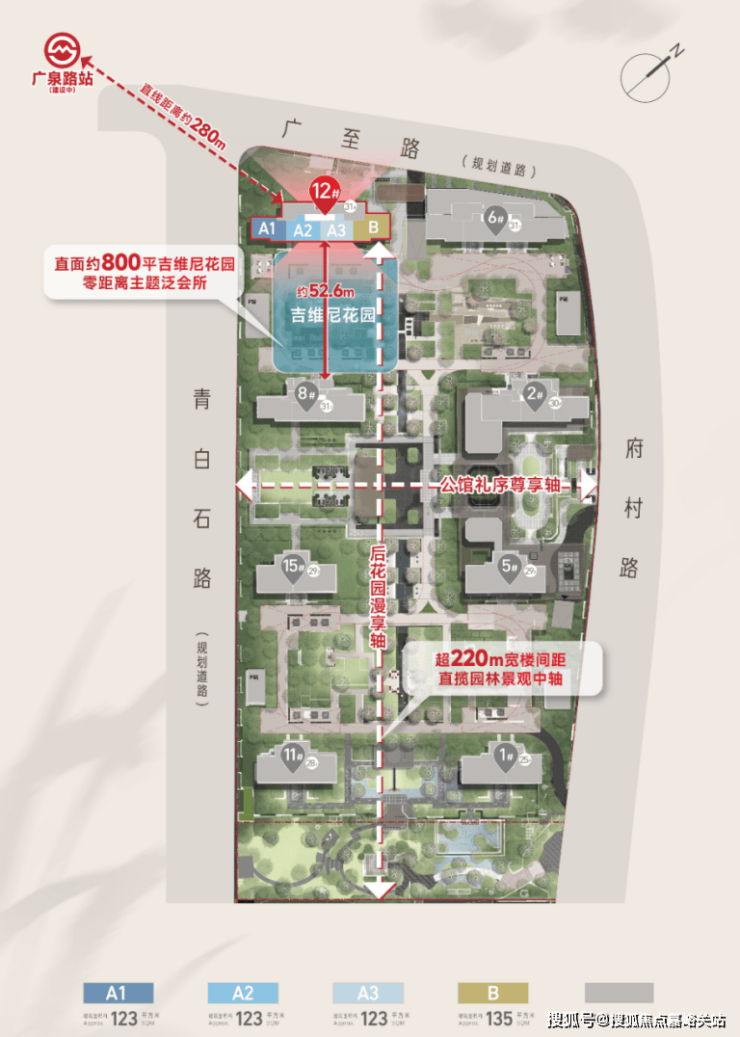 1、楼间距更开阔,离地铁更近:它的南北楼间距超过了52.6米,比首开的8号楼栋更宽敞。最关键的是,它几乎是离在建的20号线广泉路站最近的楼栋之一。