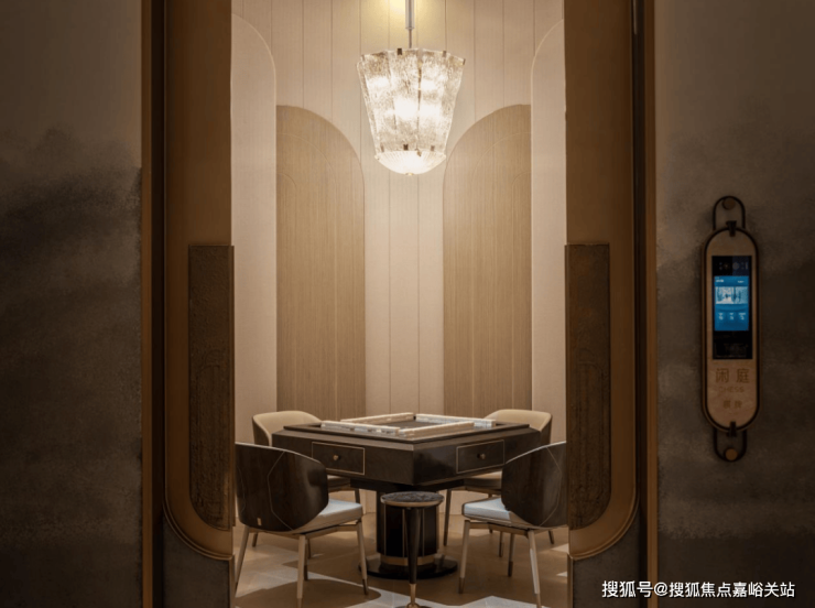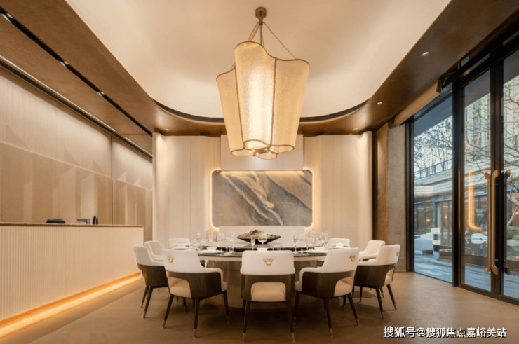 私宴厅&棋牌室 承载了业主宴请、聚餐、洽谈、品茗、娱乐等多元社交场景。私宴厅当中悬挂的石材,来自项目团队多番挑选,来自一个 奢石展馆里的孤品,不仅拥有昂贵的蓝色色泽,天生的羽毛状纹理更是罕见 !