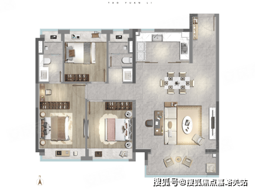 建面约 166-178㎡ 四房两厅三卫(终极改善) :大平层设计,四开间朝南,南向面宽超 14 米,采光视野极佳。约 62㎡超大 LDK 一体化空间,奢阔大气。双套房设计,主卧带独立卫浴、衣帽间和观景飘窗。多功能房间,可做书房、儿童房或茶室,满足高阶改善家庭的所有想象。