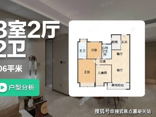 建面约 106㎡ 三房两厅两卫(刚改主力) :总价约 850-920 万,三开间朝南,南北通透。客餐厅一体化,连接南向阳台,空间开阔。主卧套房设计,带独立卫浴和衣帽间,私密性强。功能性与舒适度完美平衡,是三口之家或成长型家庭的理想选择。