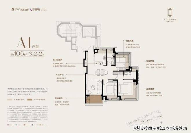 东1#边套:全屋飘窗+约270°的转角飘窗,实际空间感十分优秀!