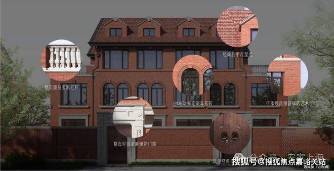 建筑基层石材选用近拟传统皇家建筑所用金山石的世贸金麻,经手工凿毛、酸洗做旧处理,搭配铜质落水管、水纹压花玻璃,每一处细节都在诉说海派大宅的优雅与贵重。