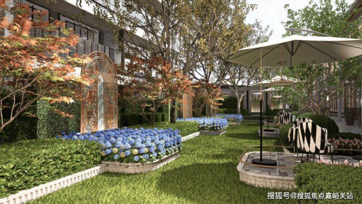 另外,下沉庭院东侧是织梦奇园,兼具趣味感和互动感的儿童乐园。 海派生活轴的端点是邻里交互的 艺术花园 ,是业主茶余饭后散步的好去处。