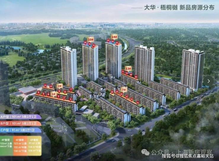 嘉定安亭『大华梧桐樾』六期约90-144㎡高层、叠加;均价4.45万/㎡;