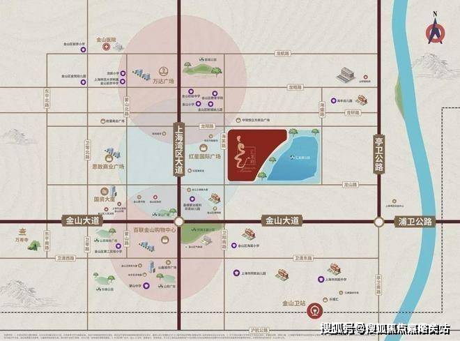 商业方面:项目位于金山新城,北侧一路之隔的为金山悦立方商业广场,北侧约1.3km为金山万达广场,这里几乎就是金山新城的商业中心。