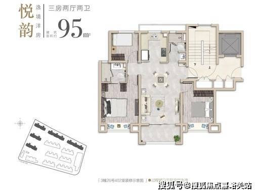 户型介绍:85-95㎡精装洋房,117-129㎡叠墅。洋房三开间朝南、LDKB 一体化、得房率 80%;叠墅带庭院 / 露台,空间奢阔。