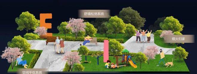 5+X景观组团,则是更将松弛感融入日常:从元气满满的归家动线,到促进多元交流的的无界客厅、阳光剧场;从儿童友好的探索营地、宠物陪伴的宠爱天地,到串联整个社区的乐活街区……每个模块都精准承载真实的生活场景!