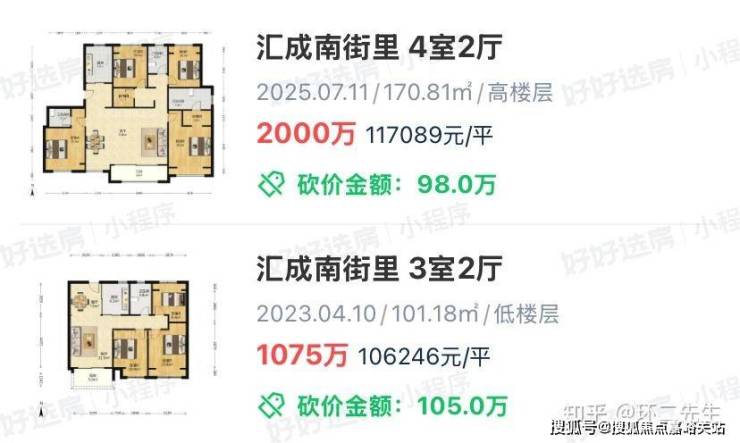 要知道,汇成南街里2020年首开仅7.95万元/m²,2023年三期开盘8.99万元/m²;