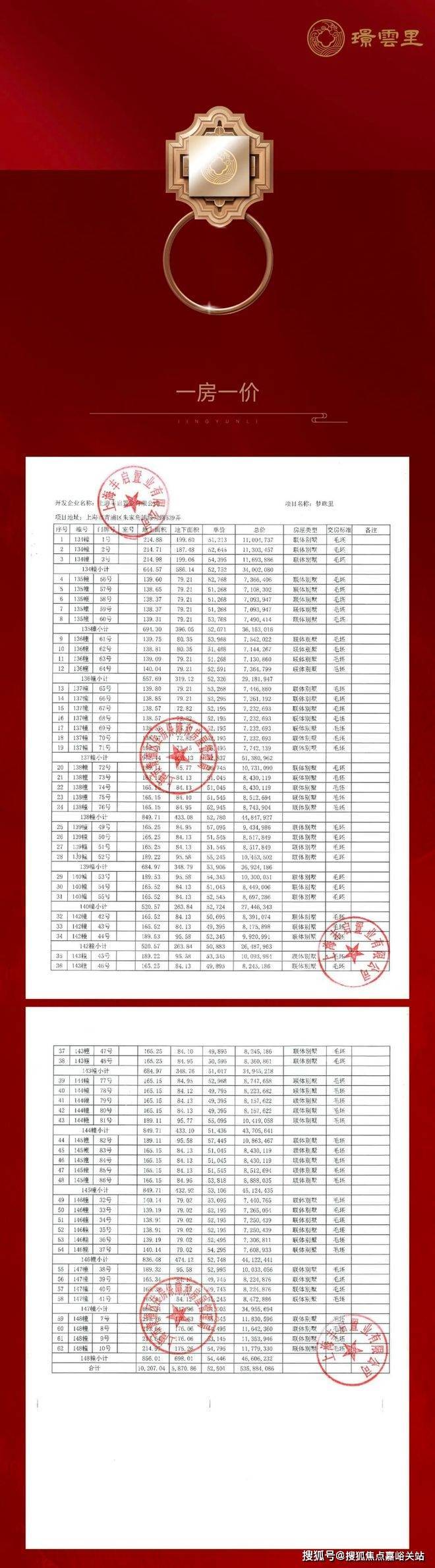 过会均价52501元/㎡,总价709万起