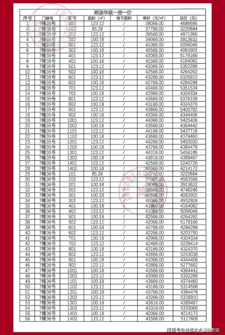 项目2期一房一价表▼