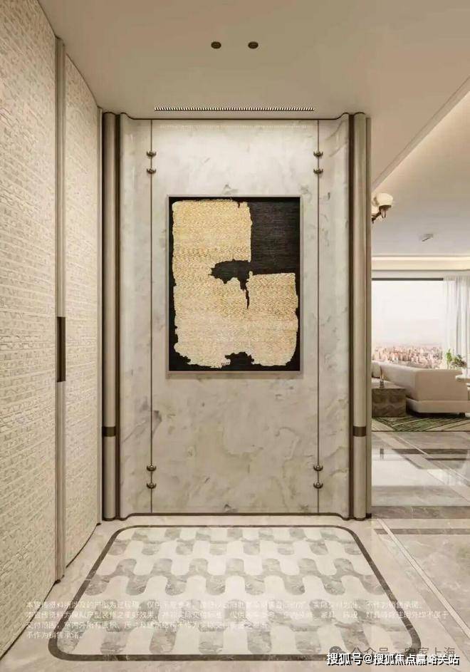 约2㎡玄关拼花采用胜利拱券 ×全水刀工艺!超高压切割让石材切口平整无崩边,结构更稳定,搭配天然石材的高硬度属性,长久使用依旧光洁如新,省去后期维护烦恼。保利外滩曜售楼处电话4008569058☑️☑️
