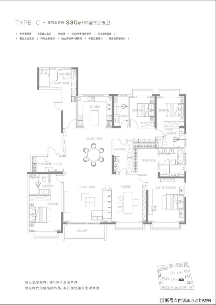 建面约206-330㎡大平层 收官发售 均价约12万/㎡可直接选,都还是准一梯一户的设计。