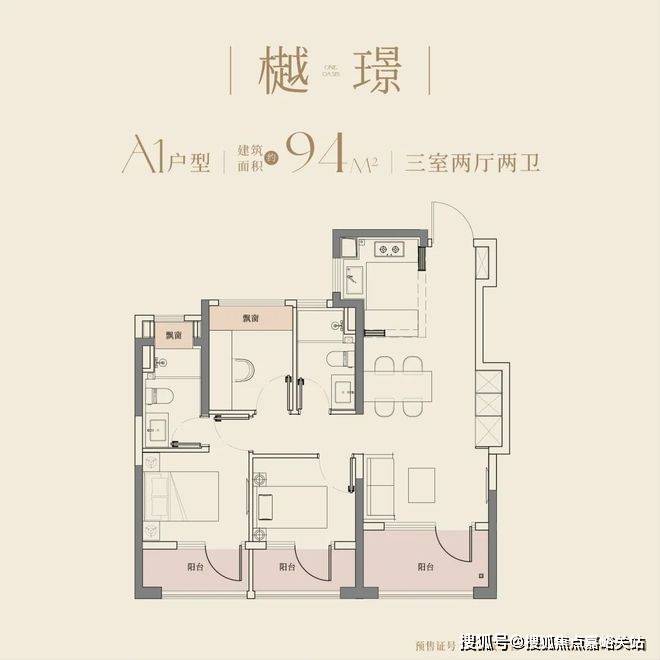 建面约94㎡户型,即做到了三阳台的配置,方正户型格局,大开间尺度,全室飘窗设计,可做多元改造,如储物空间或拓展室内面积,为生活打开更多想象空间。