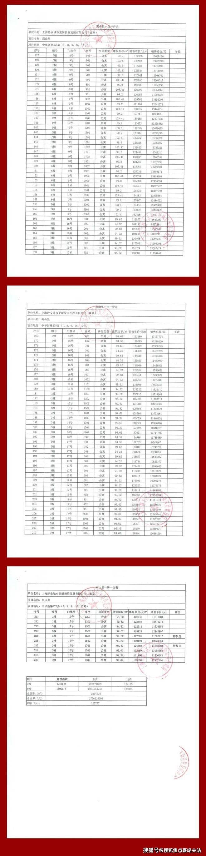 最新一房一价表: