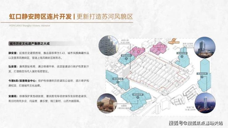 弘安里的北侧的静安里,上海静安里,汲取新天地、张园等城市节点级风貌商业精髓,精心规划沿武进路历史风貌商业街区,展示体验在地文化,打造高端零售、高档餐饮、文化展览等丰富业态的商业格局,再融入弘安里和静安里的成片风貌区,未来这里将成为上海的新里天地!东侧的18街坊,就是崇邦集团商办综合体。总建筑面积达29万㎡,其中包括约11万㎡的新建商业设施,10万㎡的超高层办公楼,目前已投入使用。西侧则是安康苑和龙盛湾上打造的超高层住宅和高能级商业。