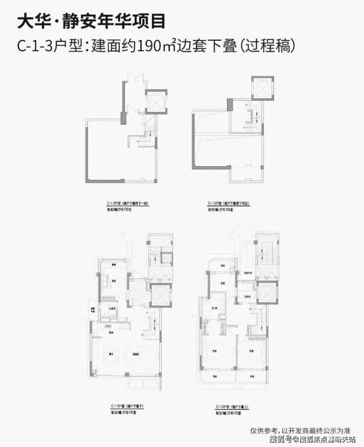 『大华·静安年华』项目采用高低配设计,是由1排高层+3排叠墅的布局,总计175套房源,项目由一栋24层高层和3栋5-6层叠墅组成,高层105套(108至123㎡3房4房)、叠墅70套(180到220㎡),自4层起架于3层商业之上