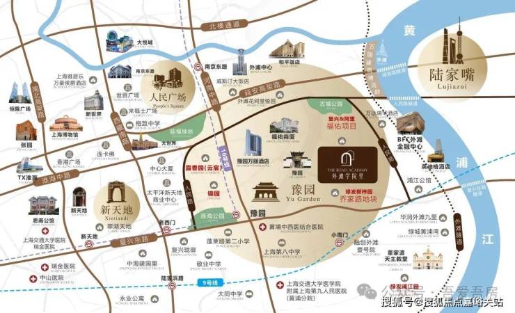 约1KM范围内豫园、城隍庙、外滩、万国建筑群等