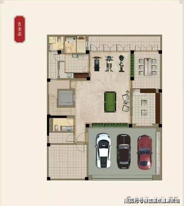 地下一层做了一间影音室,两间卧室,和一间保姆间。地下二层做了一个吧台,一间影音室,一间瑜伽室,一间宠物室及会客厅。