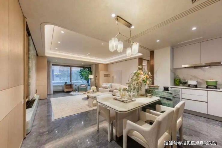 厨房+餐厅+客厅+阳台在一条动线上,显著拉升空间感,也增加了生活中的互动交流;