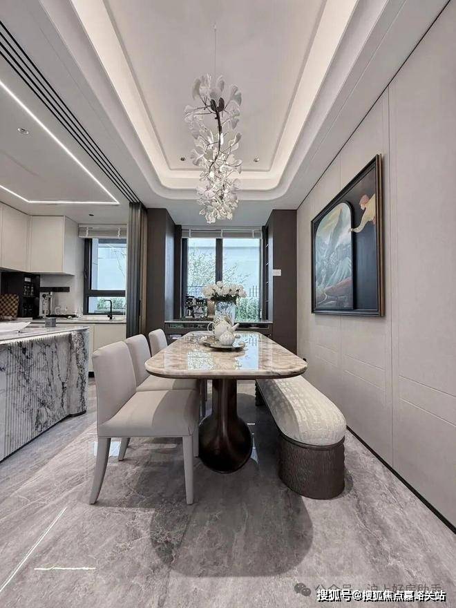 海上清和玺售楼处电话:400-8894-986进门可以看到经典的S墙设计,L型厨房操作台面,也是暗藏不少细节——玻璃移门采用完美系列夹丝玻璃+金属造型边框,顶部配置线性凉霸+LED嵌入式回形灯带+筒灯,海上清和玺售楼处电话:400-8894-986灶台后侧采用大面积岩板铺设,方便清洁的同时显得厨房更加大气。