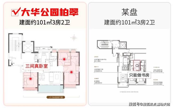 但大华公园柏翠的建面约101㎡3房2卫,却很好的解决了以上所有问题: ✅ 大华公园柏翠售楼处电话:400-9975-759✅︎✅︎✅︎