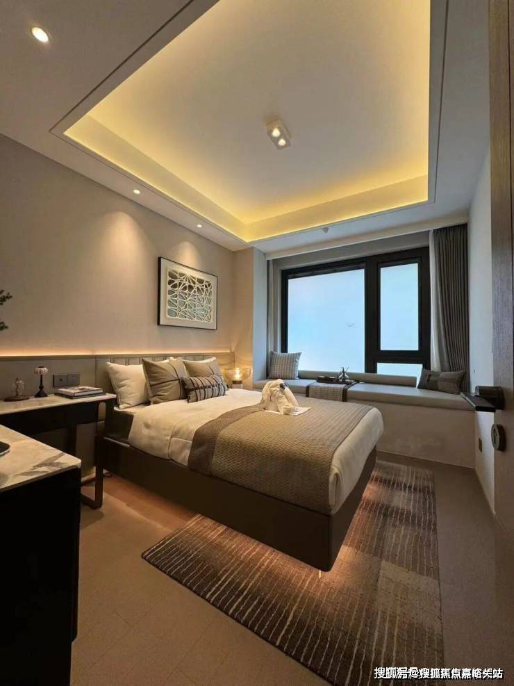 而人行线路则由星级酒店式的入户大堂进入,接着便是6S会所环绕的下沉式水景庭院,约7米高磅礴大气的水景墙配合乌桕林和原石、浮桥交错的地面水景,若是傍晚归家,还能欣赏倒映在水中的点点星光,可谓满满的奢雅意境和尊贵仪式感!