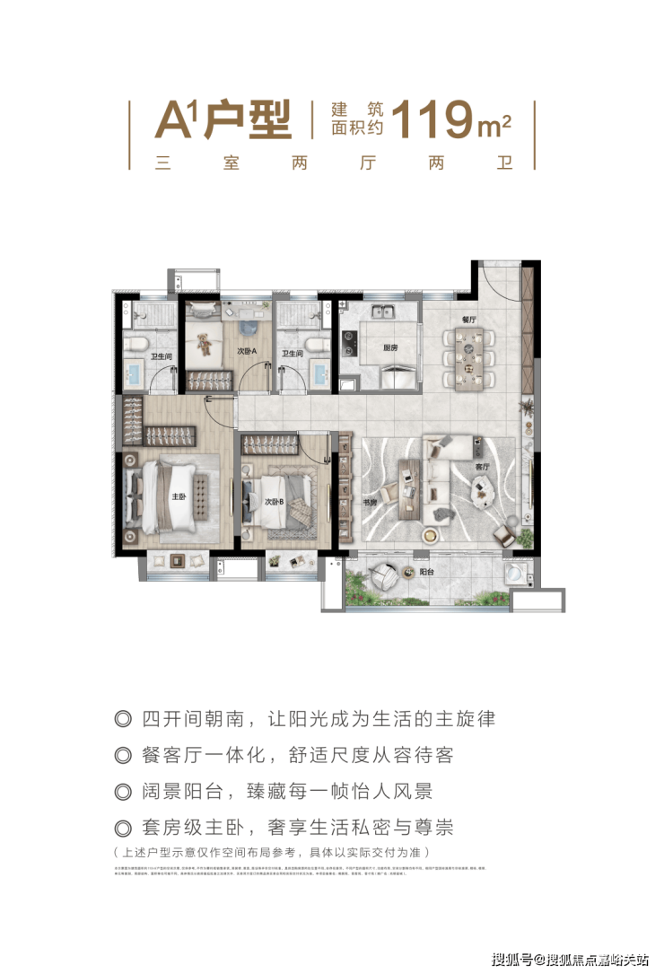 还有南向的超大宽面阳台、整体南北通透的格局、还有主卧套房的设计,这个户型实现了多数人对于未来生活的期待。