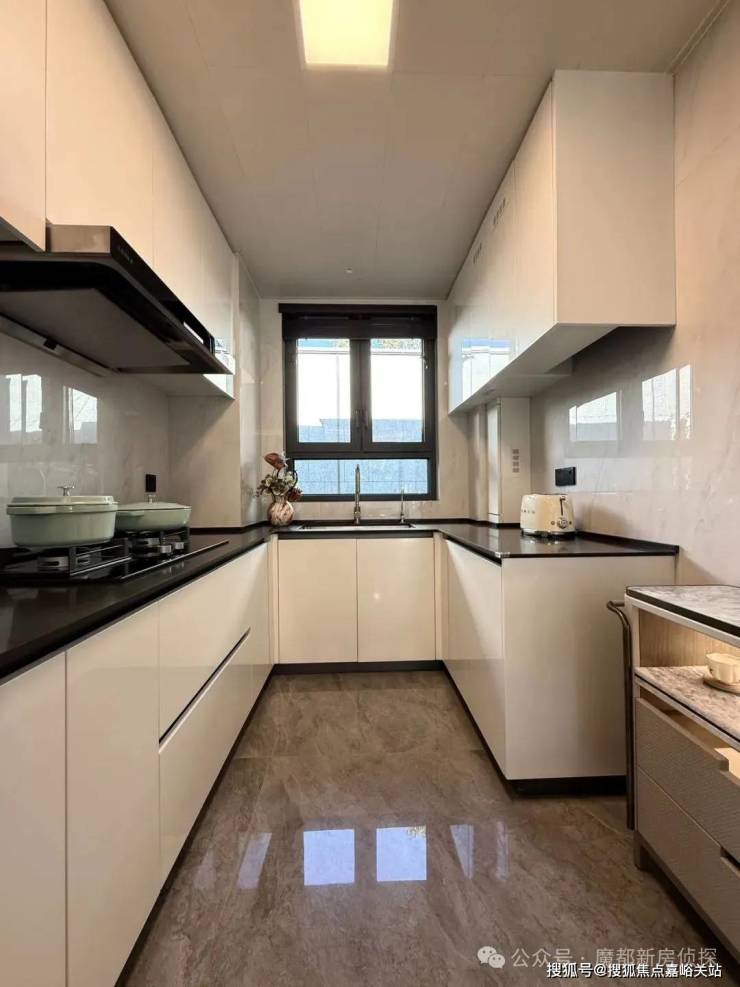 除了保证空间内部的新鲜空气流通,转角飘窗也吸纳更多的采光,搭配外部的园林景观设计,大大提升了居住的舒适性。厨房均设有舒适尺度的窗,从细节处提升居家品质。