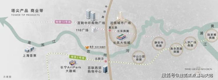 项目隔着河就是长宁北新泾,且靠近中环线,自驾交通便捷,而2号线北新泾地铁站和13号线真北路地铁站都在项目步行约1.5km的位置。