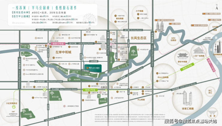 和樾府不仅占位上海发展战略高地苏州河这一不可再生不可复制的滨水资源,而且是稀缺的一线苏河(与苏州河之间仅隔着半马公园)!