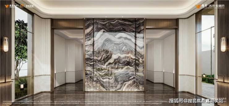 项目还是双首层大堂,酒店式落客设计:首层大堂和地下大堂,均采用丝绸之路奢石铺设。