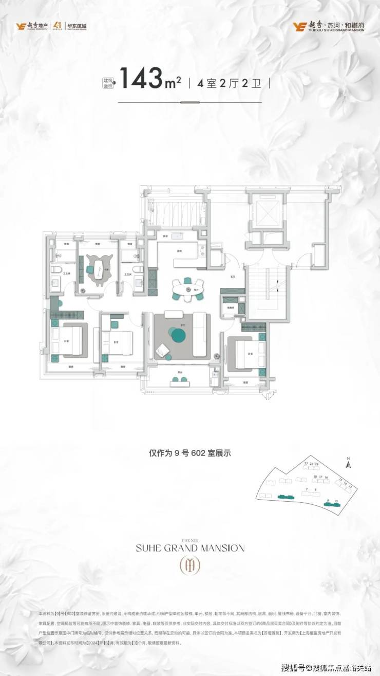 130㎡和143㎡户型,电梯厅约8.5㎡,标准层都设置丝绸之路岩板,房号设置背景为直纹白玉,低调大气,拿捏归家的尊崇感。越秀·苏河·和樾府售楼处电话☎:400-833-6309