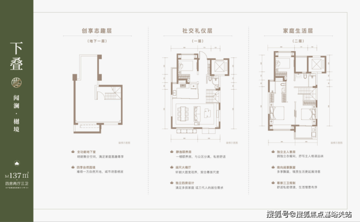 建面约137㎡下叠,四房两厅三卫全能格局,非常适合二娃家庭以及三代同堂。