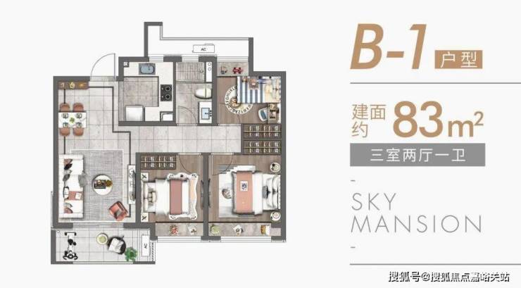 上海宝山天铂建面约83~89㎡朗阔三居全能户型,动静分离,静谧舒适,每1cm的考究,都映射着每一个人居的诉求