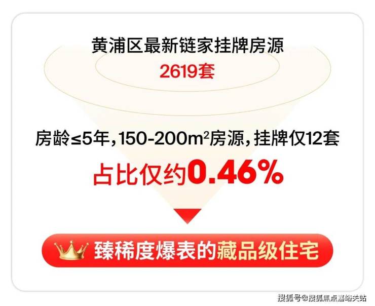 目前链家网上黄浦区共有约2619 套挂牌房源,其中房龄≤5年的150-200m²房源只有 12 套挂牌。