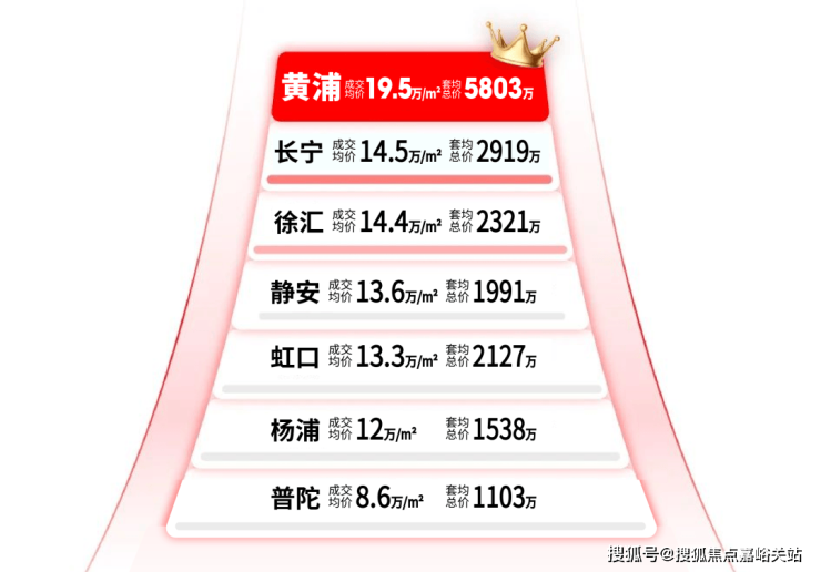 而相比这些区域,地段更加核心、圈层更加统一、资源更高能级的黄浦区中部,则将是20万/㎡+的市场。
