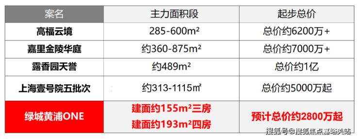 当前黄浦豪宅新房供应面积普遍超过300 m²,总价5000 万到1 亿以上, 绿城黄浦ONE是当前区域内3000万级总价段的独苗,是黄浦核心地段最后的上车机会!