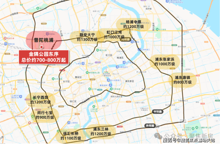 我们纵观这条金色中环带上的诸多板块,目前 房价还未被狂热炒作、尚能称得上“价格洼地”的宝藏地段,唯有金隅公园东序所在的桃浦智创城。