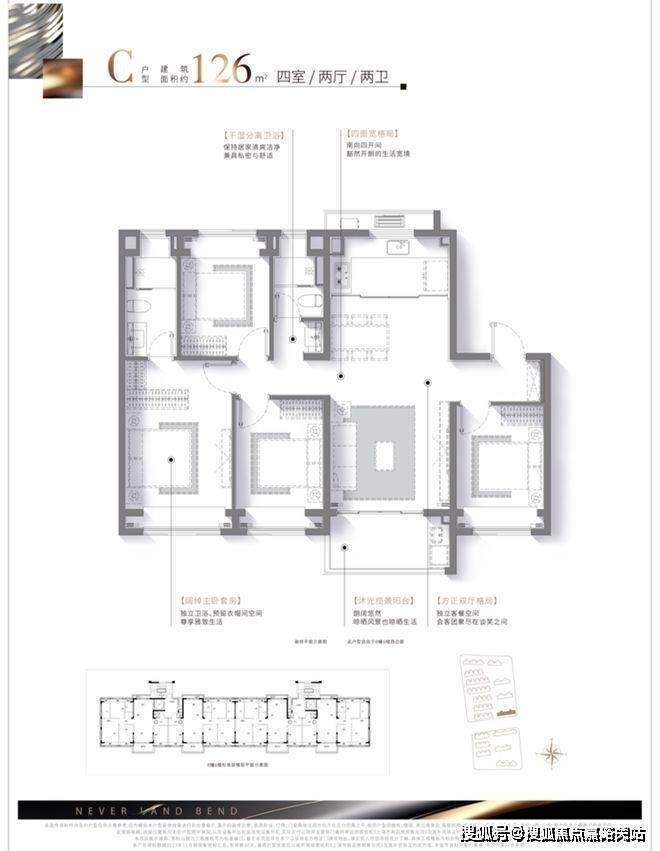此外,干湿分离卫浴设计+南向套房主卧+全卧飘窗设计,生活舒适度拉满。