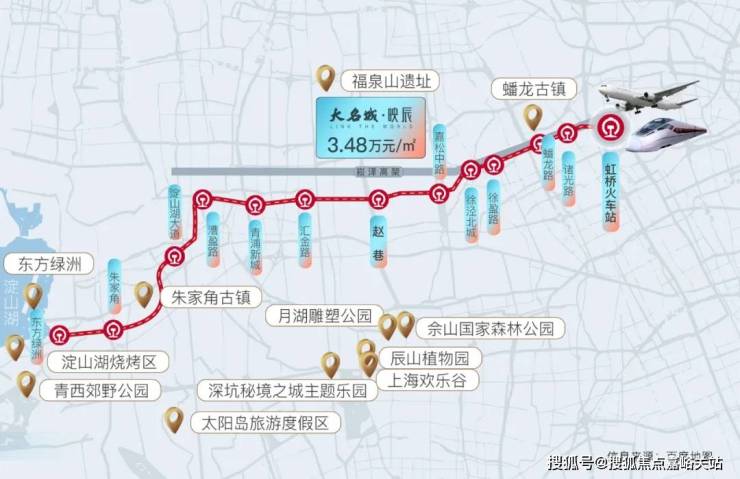 此外,从「大名城映辰」出发,乘坐17号线往西7站直达青浦华为研发中心,对于华为上班的科创人士,也是非常友好。