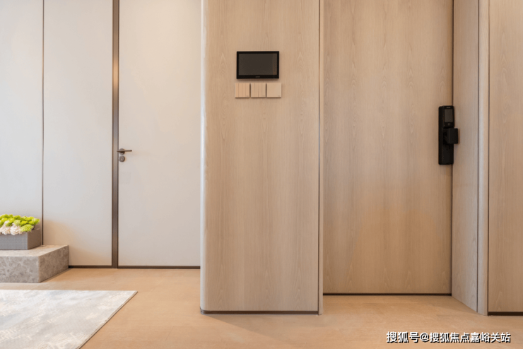 这一点实在难能可贵,毕竟在大多数样板间里,电梯厅和室内空间往往由于采购商与施工方的不同,导致风格、色系等方面存在割裂感。