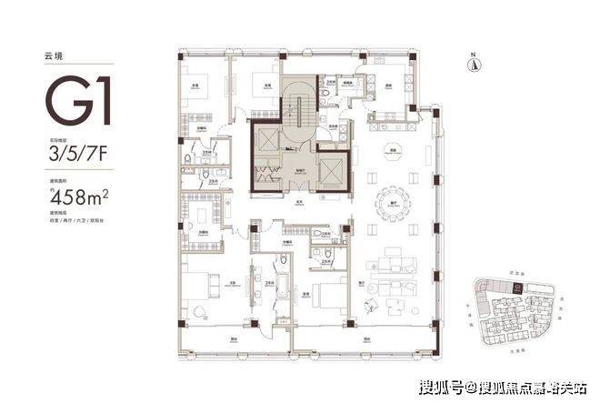 建面408㎡大平层 南向面宽26.8米,得房率89%