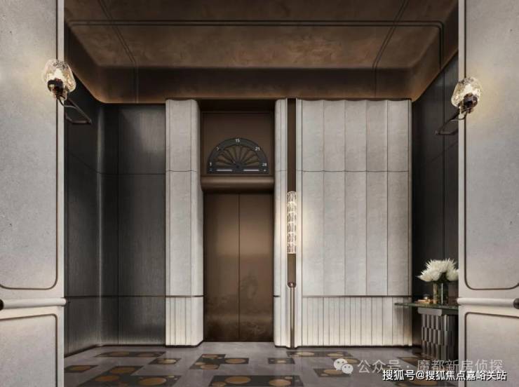 电梯厅的宠物识别按钮是艺术家定制款;入户门把手出自艺术家刘建华之手,用整块实心铜锭经锻造、打磨、电镀等多道精密工艺制成,握住的瞬间就是与艺术的触碰