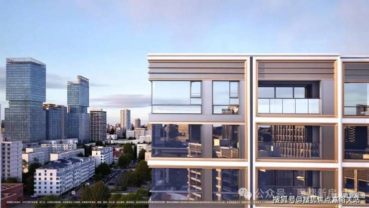 基底采用质感厚重的 石材, 上层第一界面则以 全铝板+玻璃幕墙为主, 更突破性地实现了“四面平权”设计——不同于多数楼盘只注重南面美观,侧面与北面简化处理的做法,保利誉滨江无论从正面、侧面还是背面观察,立面都保持精致统一的视觉效果。知道,当下杨滨新盘里,真石漆是较为常见的外立面材质,