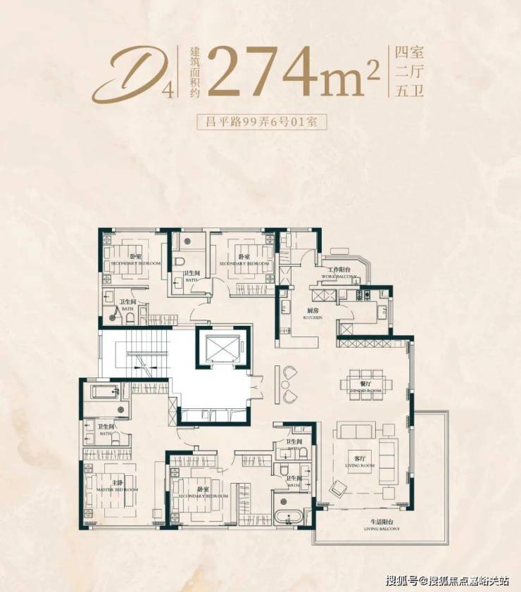 而且你仔细看, 2个套房分列客厅左右 ,并且配置极为相似。