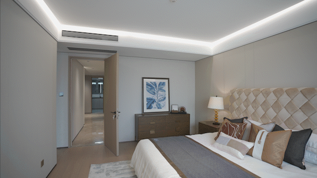 该户型 主卧整体足足有约5.9米的南向开间,比客厅还要开阔 。这在整个豪宅领域都是极为少见的!