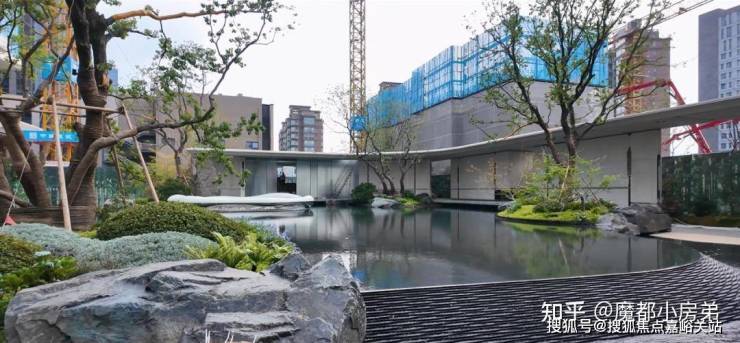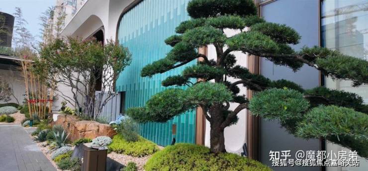 中央景观轴线超300米现场看山水景观很立体,全冠移植了乌桕树,百年罗汉松,红枫,铁冬青等昂贵树种,层次感确实很丰富。