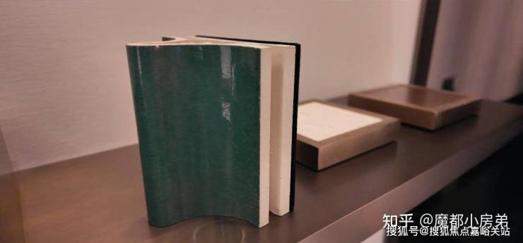 豪宅铝板、玻璃都很常见,但中建玖上琅宸用上了陶板,并且创意和审美独一档。天青釉面工艺,结合落地玻璃和金属线条,还是有趣的非对称设计,从不同角度看都独具风格,现场比效果图更有质感,未来在市场上也更有竞争力。