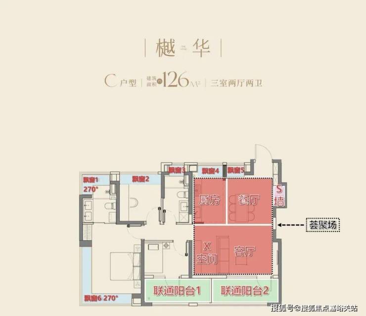 亮点还在于南向次卧和客厅联通的双阳台,顶格拉满,赠送面积(约15%)也是特别诚意。