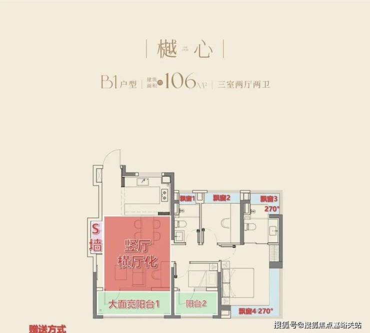 而在大华望樾106㎡的身上,我们看到了2026年新房户型的一种新趋势:竖厅户型横厅化。